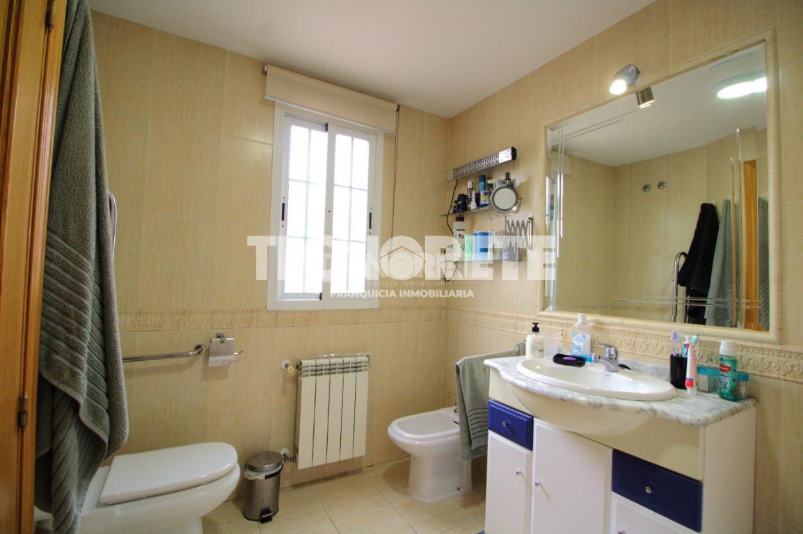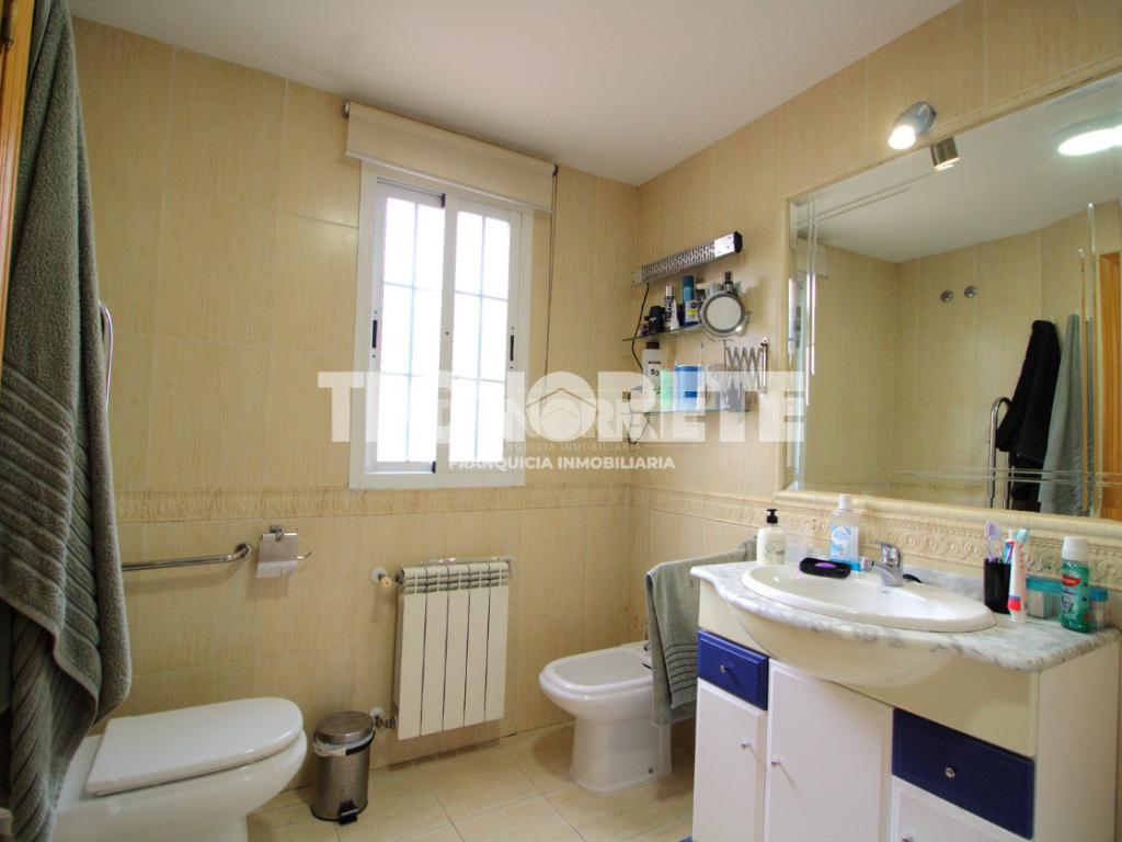 En la planta alta, 2 dormitorios dobles con armarios empotrados, 1 baño completo con bañera, habitación principal con armario empotrado y baño completo en suite con bañera de hidromasaje.
