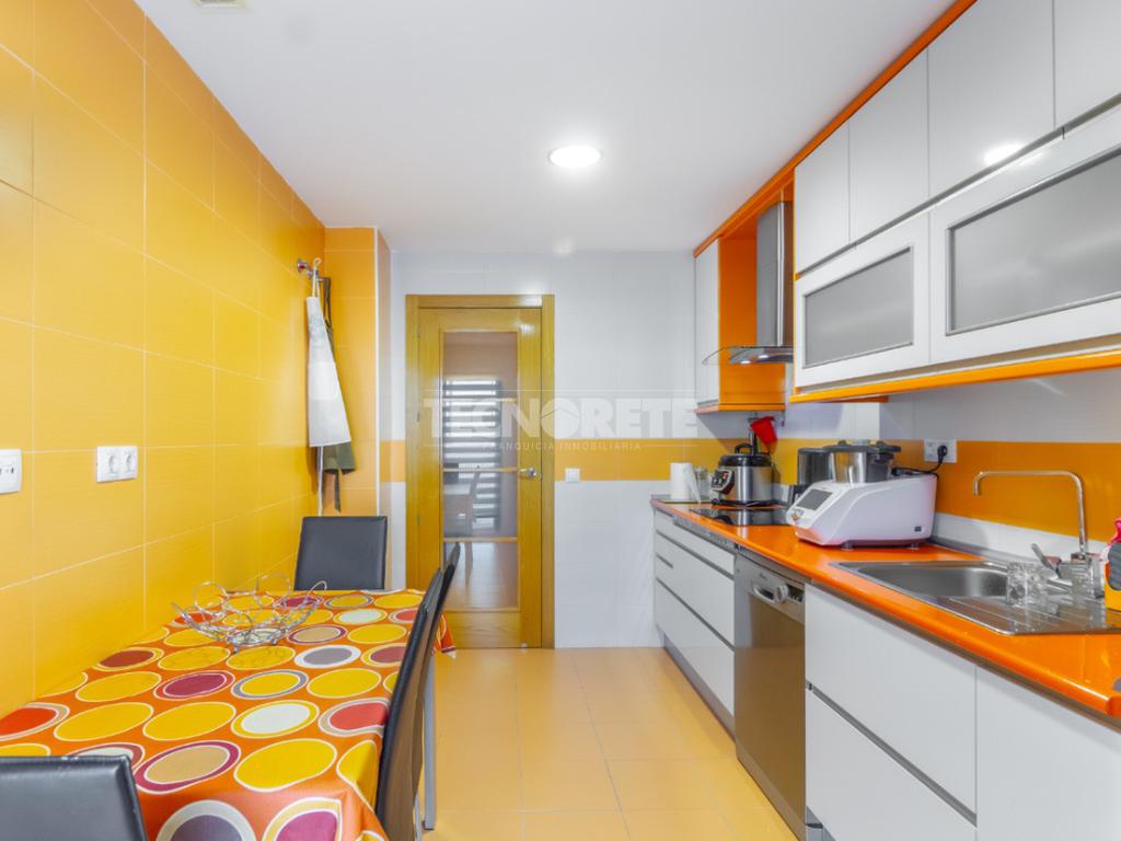 Luego nos encontramos acceso a la amplia cocina con terraza/tendedero acristalada para mejor comodidad y climatización. A continuación también, un luminoso salón/comedor.
